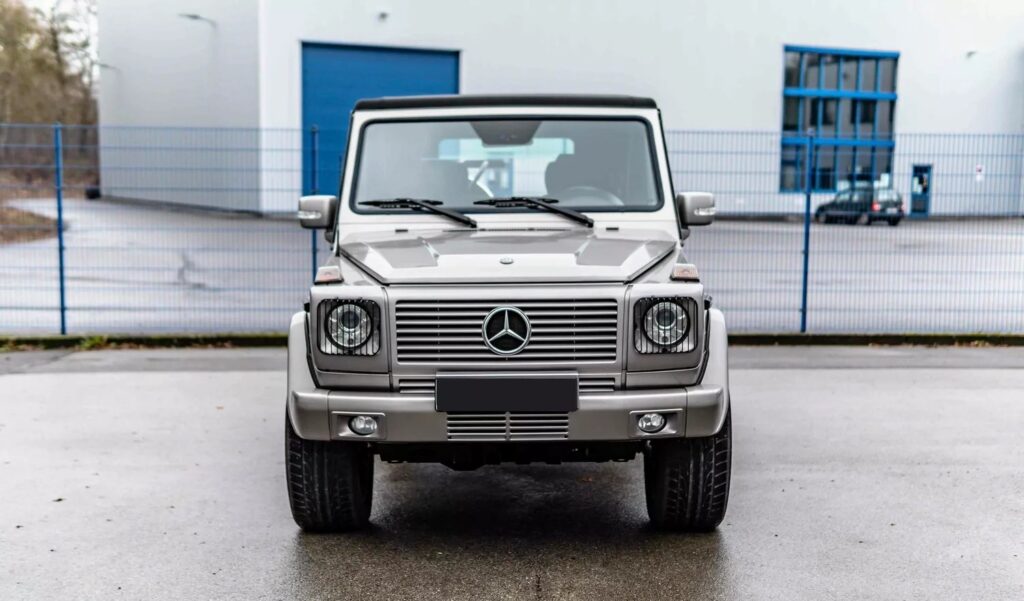 Under the interior of the G 320 CDI, which is held in black on the whole, wood applications at doors, center console and dashboard provide for accents. In addition to the full leather seats, the following features are also worth mentioning regarding the equipment of this Mercedes-Benz G model: Sunroof,power seats with memory, heated seats, power windows, air conditioning, cruise control and the original display radio. In addition, the original tarpaulin and a hardtop are also available for the car.
